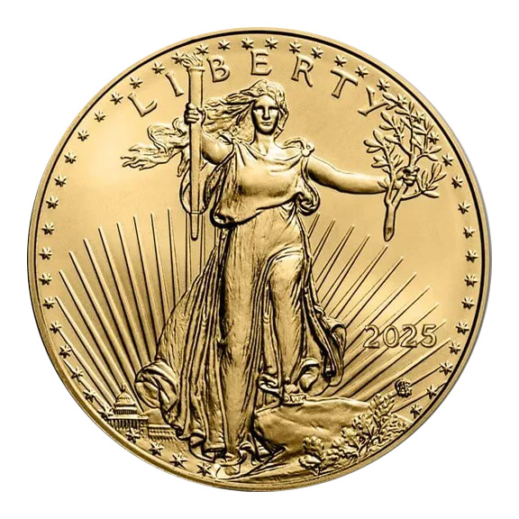 Because of its popularity the US Mint produces large quantities of the American Gold Eagle 1 oz 2025, all of which closely follow the price of gold.