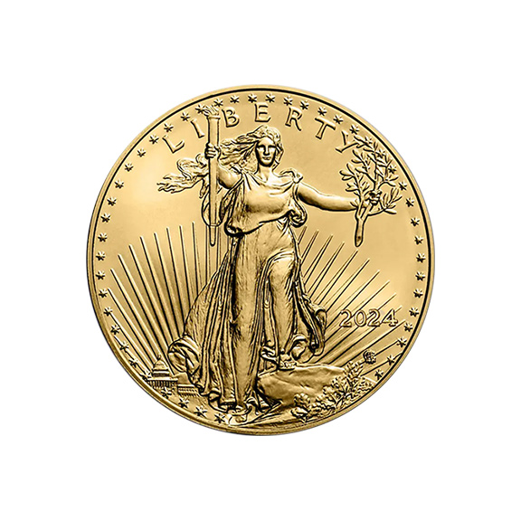 Reasons for its popularity include: (1) The American Gold Eagle 1/4 oz 2024 appeals to a worldwide audience because of its low premium. It is also a popular choice for Individual Retirement Accounts. (2) The American Eagle is easy to buy and sell because dealers worldwide post daily buy and sell prices. (3) This popular gold bullion coin contains one quarter ounce of the gold so valuation is simple. (4) The US Mint places 40 of these gold coins in a plastic tube which allows for easy storage. (5) This coin also has a following in the “survival” community. Those who want a real US gold legal tender coin of smaller denomination for daily needs in case of emergency.