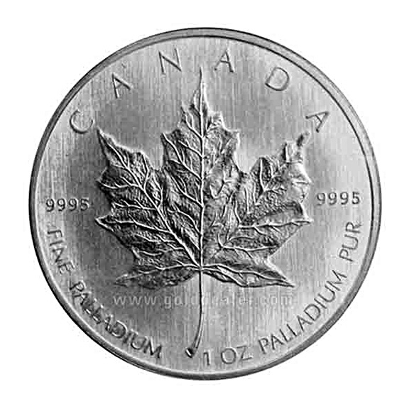 The reverse features a stylized maple leaf; the Canadian national symbol. It also includes the word palladium with weight and purity. The Canadian Palladium Maple Leaf 1 oz trades for a small premium above its palladium weight and the legal tender value while symbolic is a big plus because it provides the guarantee of a sovereign nation.